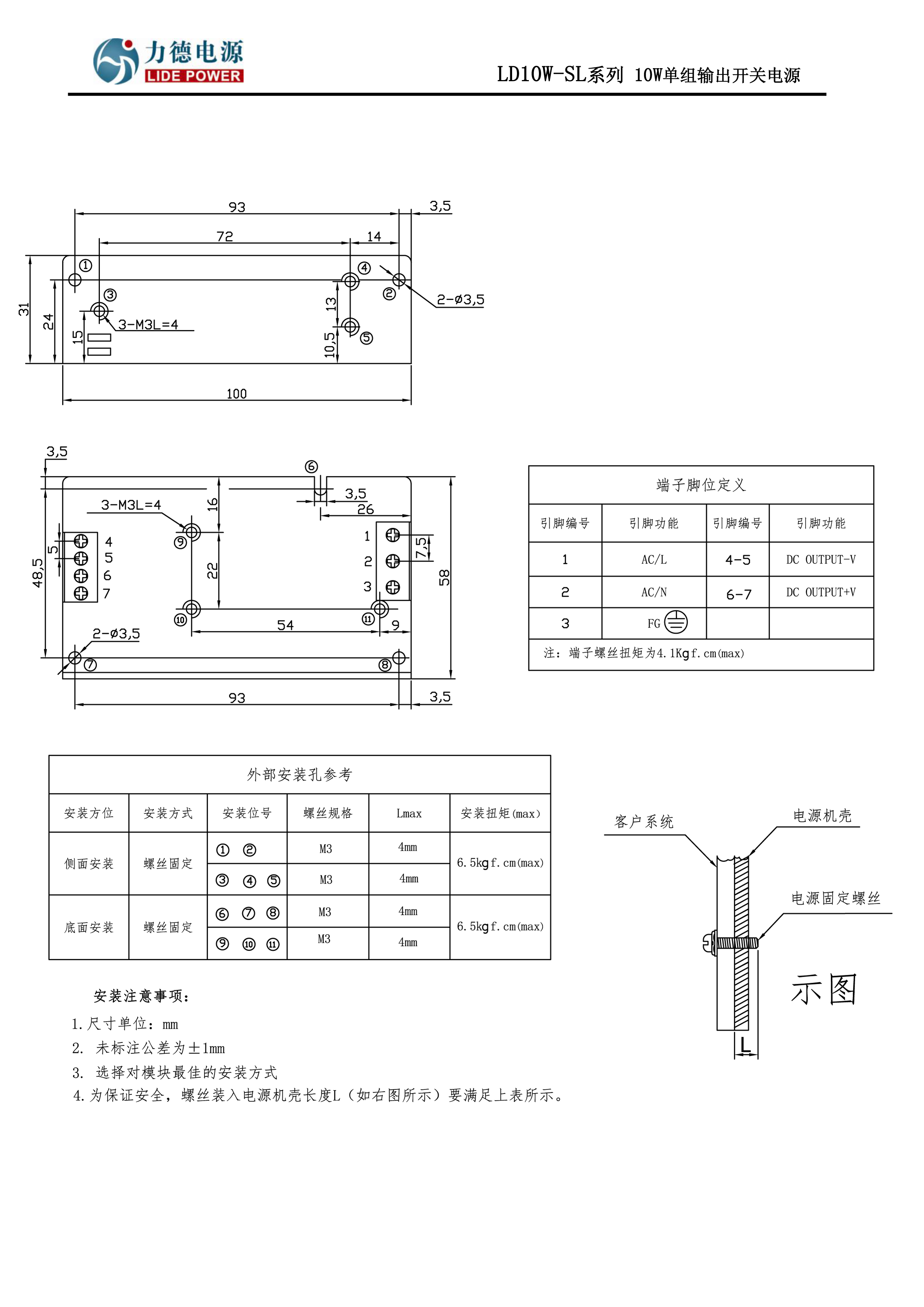 產(chǎn)品規(guī)格書下載力德10W單組輸出開關(guān)電源
