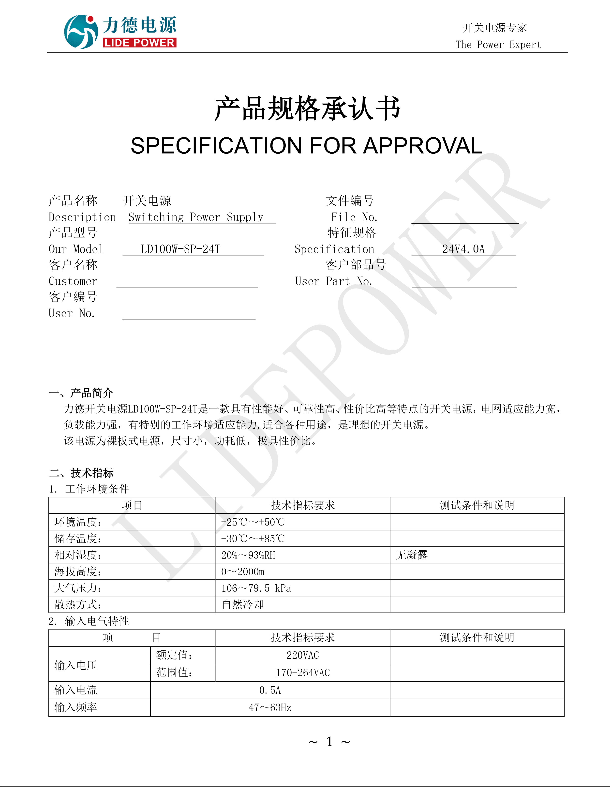 產(chǎn)品型號:LD100W-SP-24T